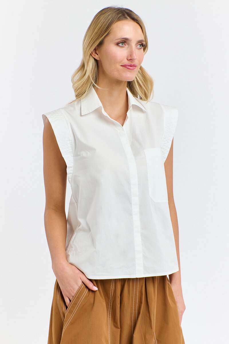 Clean, crisp, and just a little bit playful — the Gigi Shirt gives classic shirting a modern twist. With structured shoulders, a single chest pocket, and an easy button-through front, it’s perfect for tucking into wide-leg pants or pairing with skirts for an effortlessly polished look.