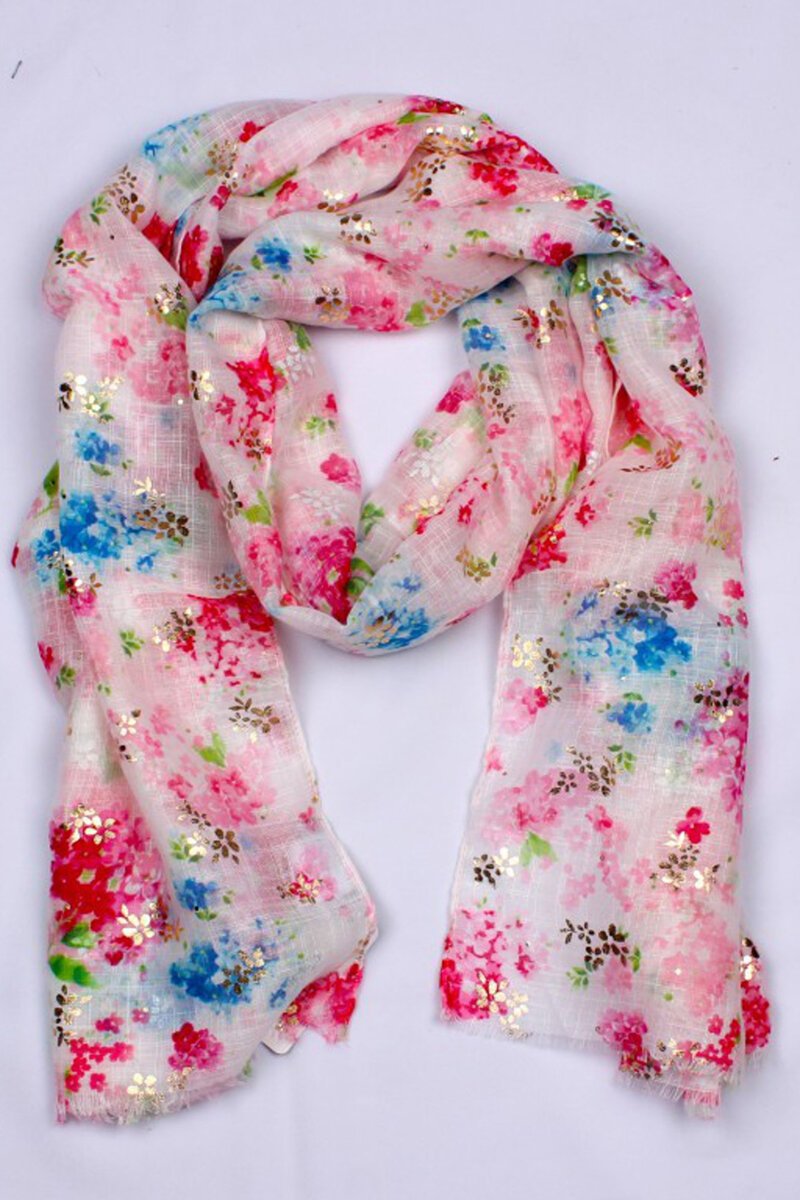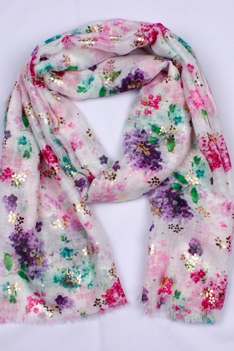 The Alice & Lily Meadowlight Scarf is a soft, lightweight scarf featuring a delicate floral print with subtle shimmer accents. Easy to drape and endlessly wearable, it adds a gentle lift to everyday outfits, day or night.