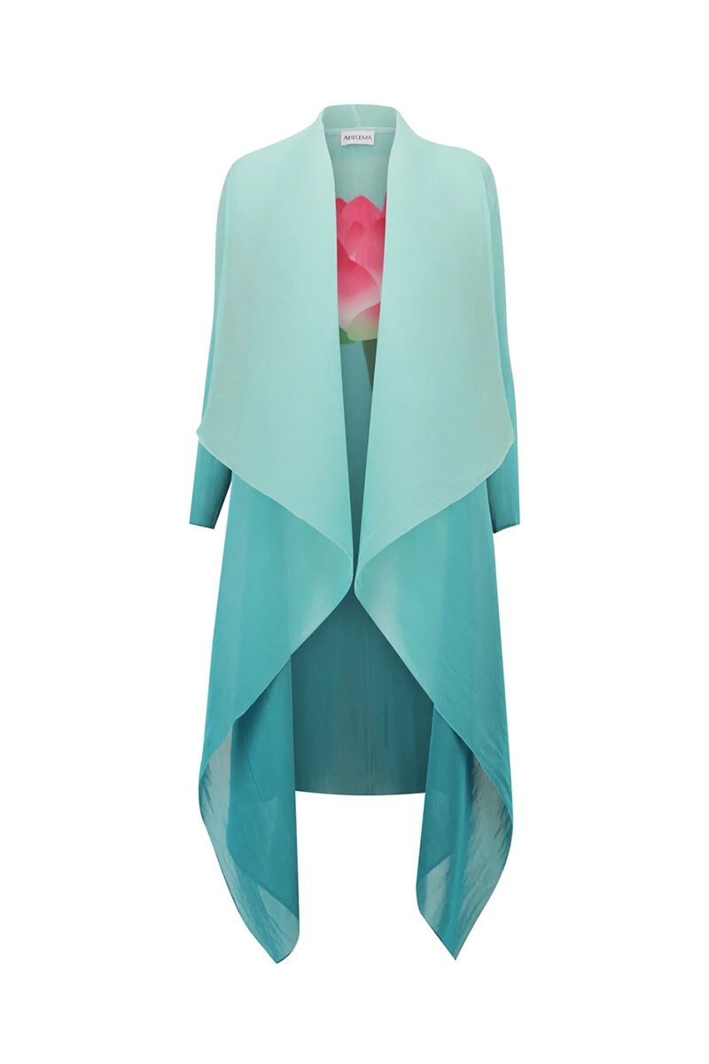 The Alquema Collare Coat adds instant sophistication to any outfit. With its flowing waterfall front and soft, lightweight fabric, it drapes beautifully to create an effortless layered look. Perfect for pairing over the Long Estrella Dress or simple separates, this statement coat moves gracefully and brings a touch of elegance to every occasion.