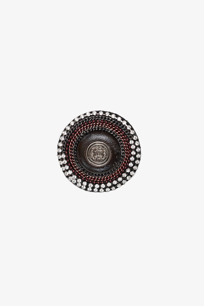 The Regal Shield Brooch means business. Rows of sparkle, deep textures and a coat-of-arms centrepiece give this one a quietly powerful edge. Whether clipped to a coat lapel or worn as a brooch on a blazer, it instantly sharpens up your winter look.