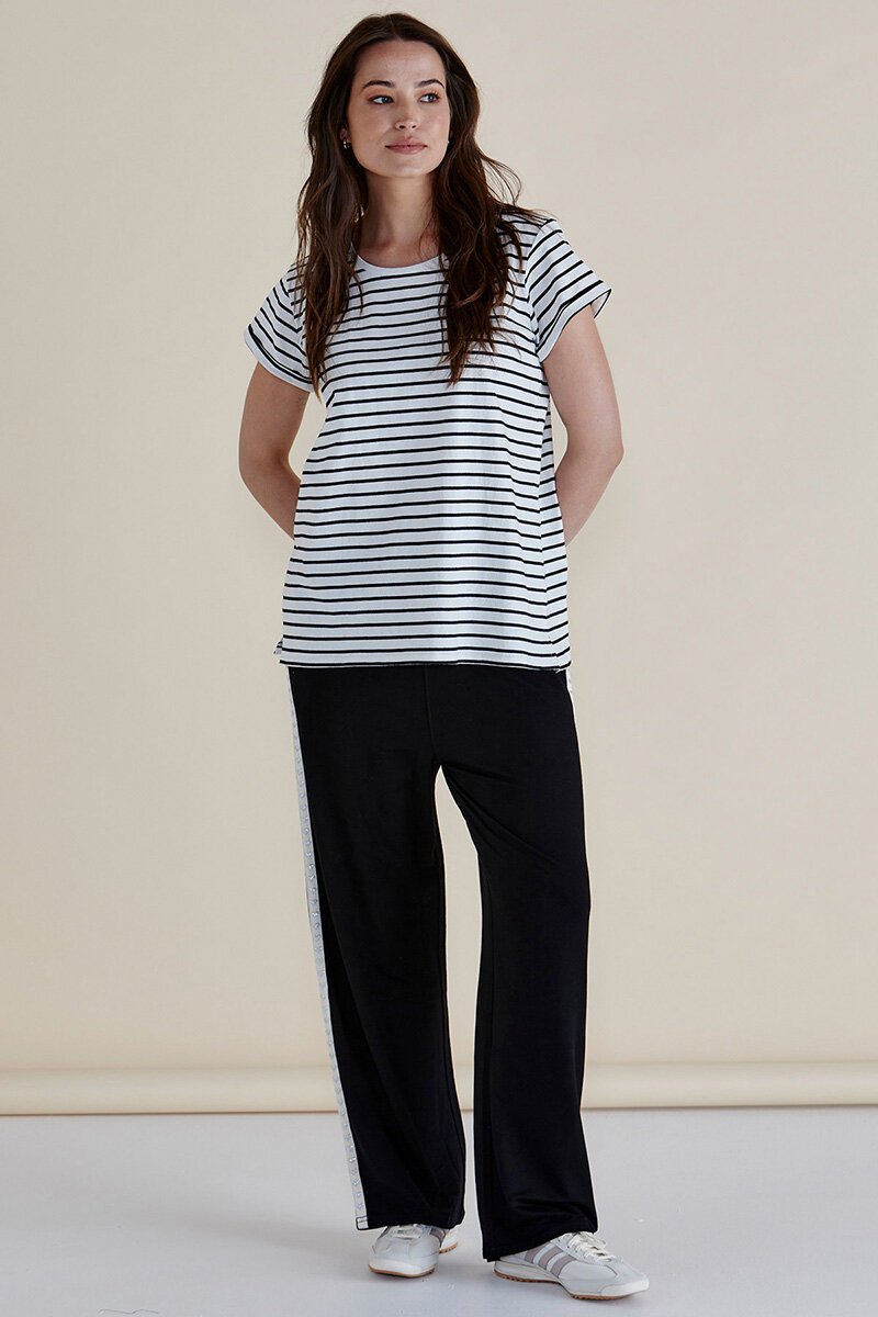 The Betty Basics Caia Crew Stripe Tee is that easy, everyday piece you’ll reach for on repeat. With a relaxed fit, cuffed sleeves and a classic crew neckline, it’s comfy without looking sloppy. Dress it up with denim or keep it laid-back with joggers—either way, it’s a no-brainer.