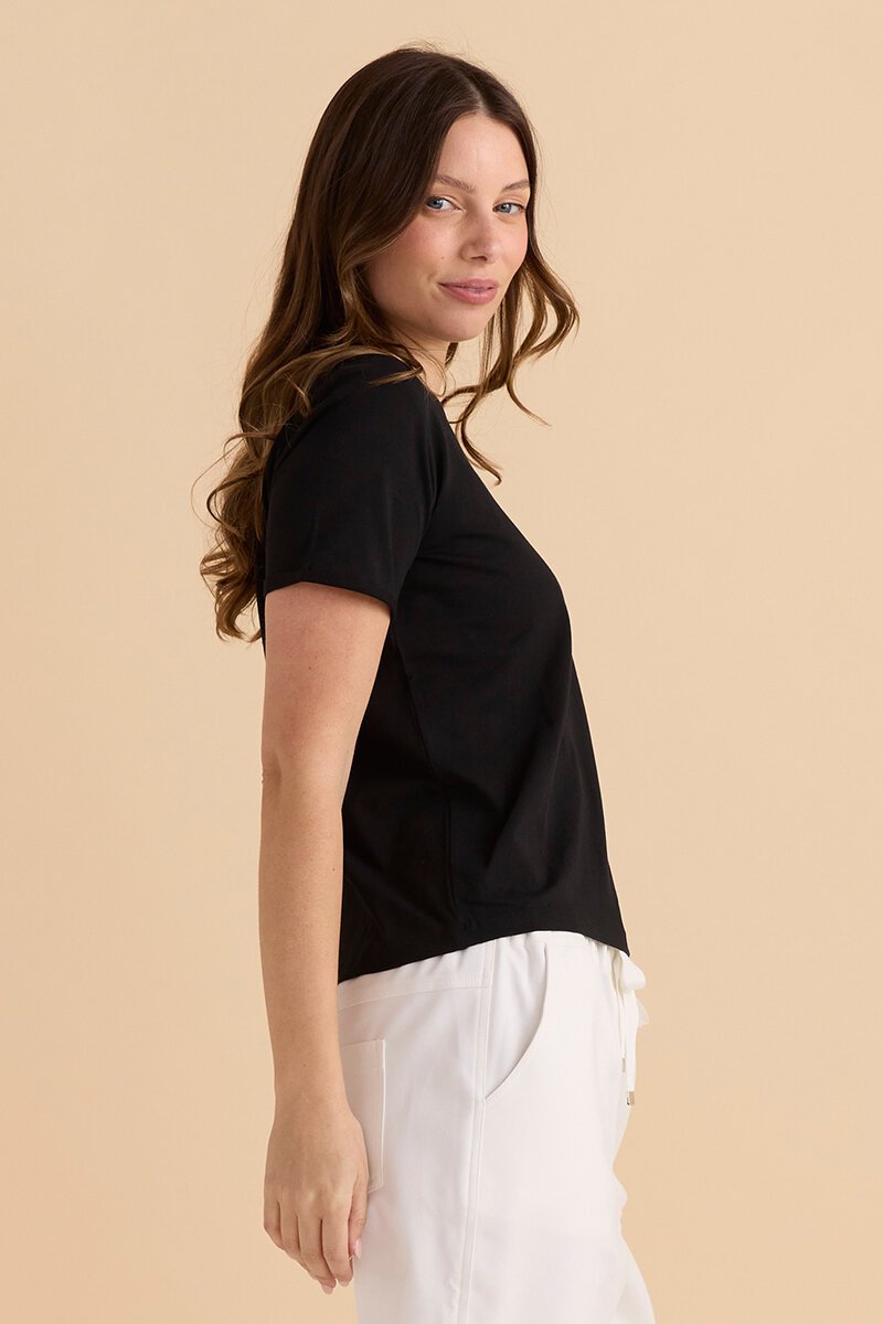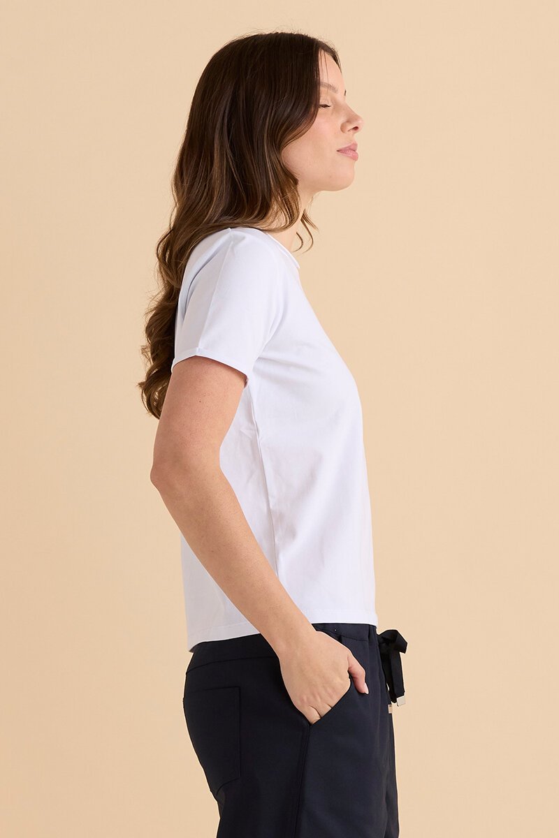 The Betty Basics Cotton Slim Fit Tee is a wardrobe essential. Clean lines, soft stretch cotton and a flattering fitted shape—perfect worn solo or layered under knits and jackets.