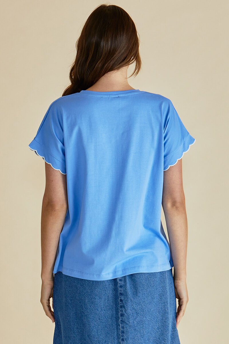 Say hello to your new favourite basic. The Betty Basics Sloane Scallop Tee comes in a fresh cornflower blue and features a soft, flowy cut with sweet scalloped sleeves. It’s an easy, everyday style you’ll wear on repeat.