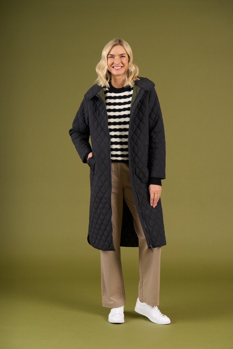 The Karori Jacket is your go-to for chilly days. Lightweight yet warm, with a longer length and quilted finish that keeps things practical without losing that everyday, put-together feel.