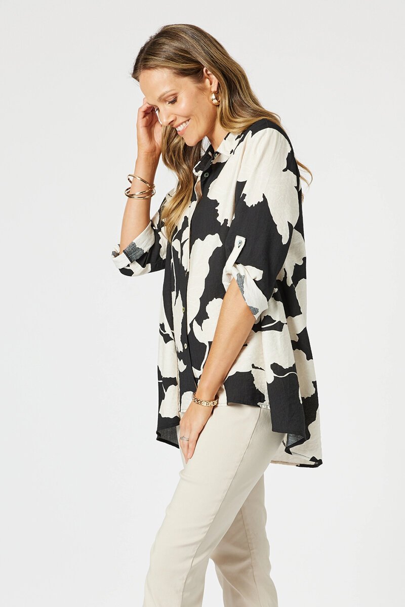The Clarity Barcelona Shirt is relaxed, breezy, and ready to elevate your everyday. With its bold floral print and easy swing shape, this button-up brings effortless style to the table. Wear it loose, layered, or half-tucked—whatever feels good. Looks even better with the matching pants.