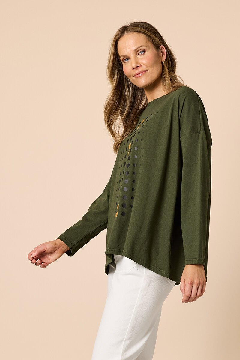 The Clarity Elise Spot Top brings an easy statement to your everyday style. Relaxed and comfortable with a fun spot design, it’s perfect for pairing back with your favourite pants or denim.