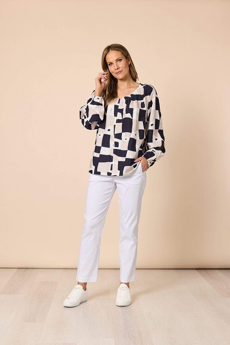 The Clarity Rive Gauche Top is a relaxed statement piece with soft movement and an easy, everyday feel. The abstract print adds interest while the floaty shape makes it effortless to wear with tailored pants or denim.