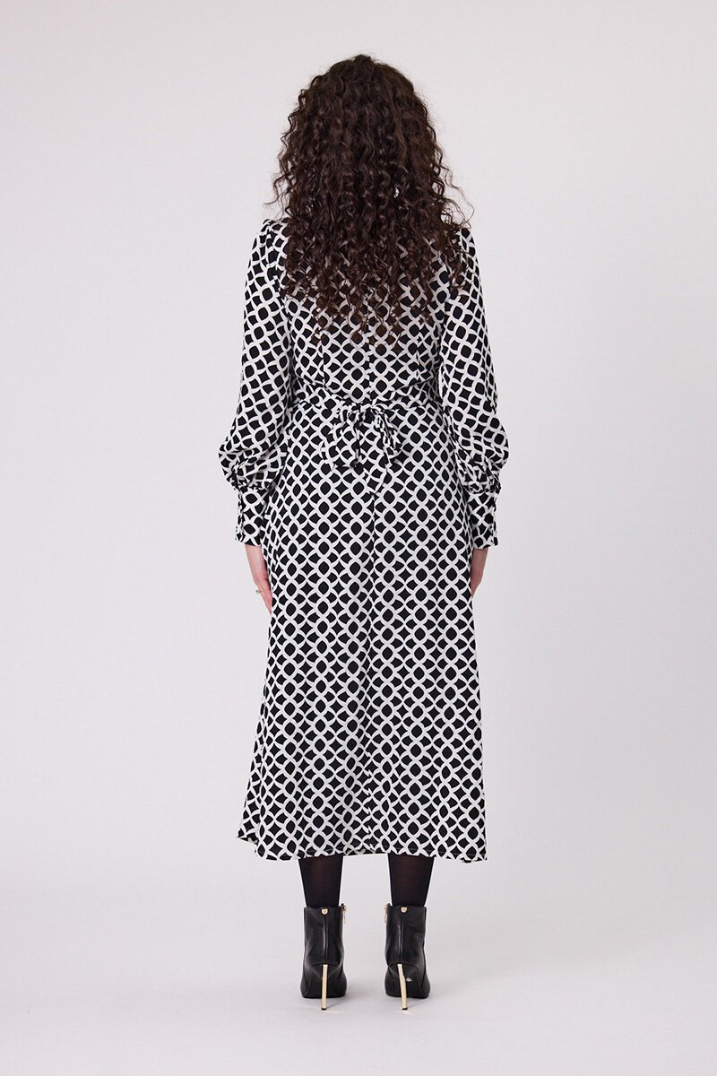 Sophisticated with a little twist, this midi dress is a no-fuss option for casual catch-ups or desk-to-dinner days. The high neck and relaxed shape are flattering and fuss-free. Easy to style, even easier to wear.