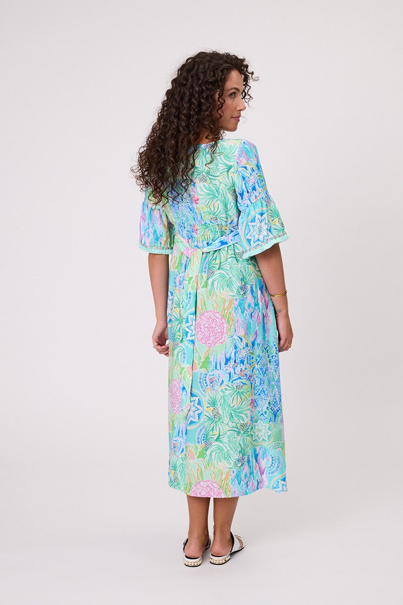 The Classified Rimini Tassel Dress brings easy elegance with a playful twist. Its relaxed fit and soft gathers create movement, while tassel detailing adds charm. Perfect with slides for day or dressed up with sandals for a summer evening out.