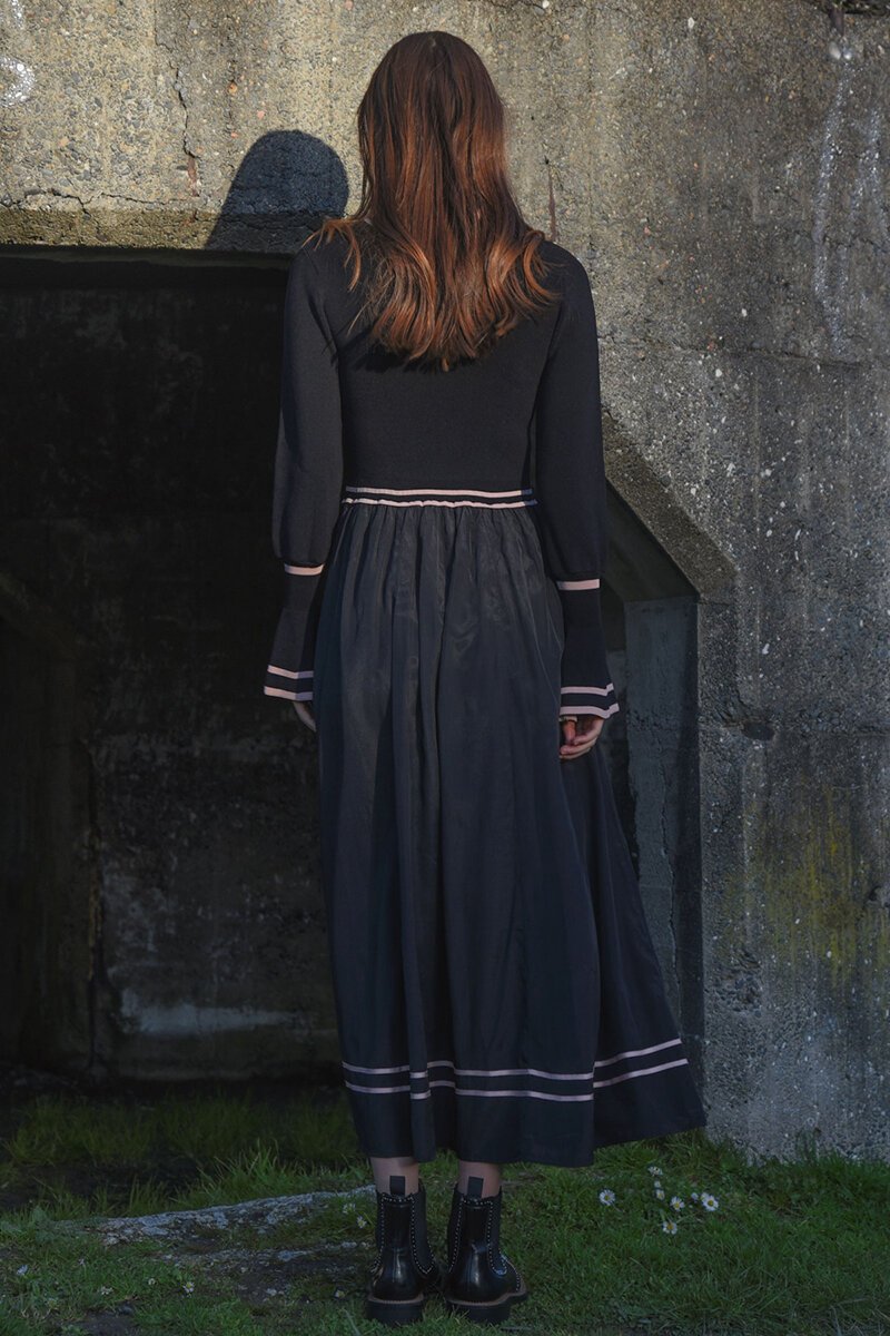 Stripe details on skirt, top, neckline and sleeves