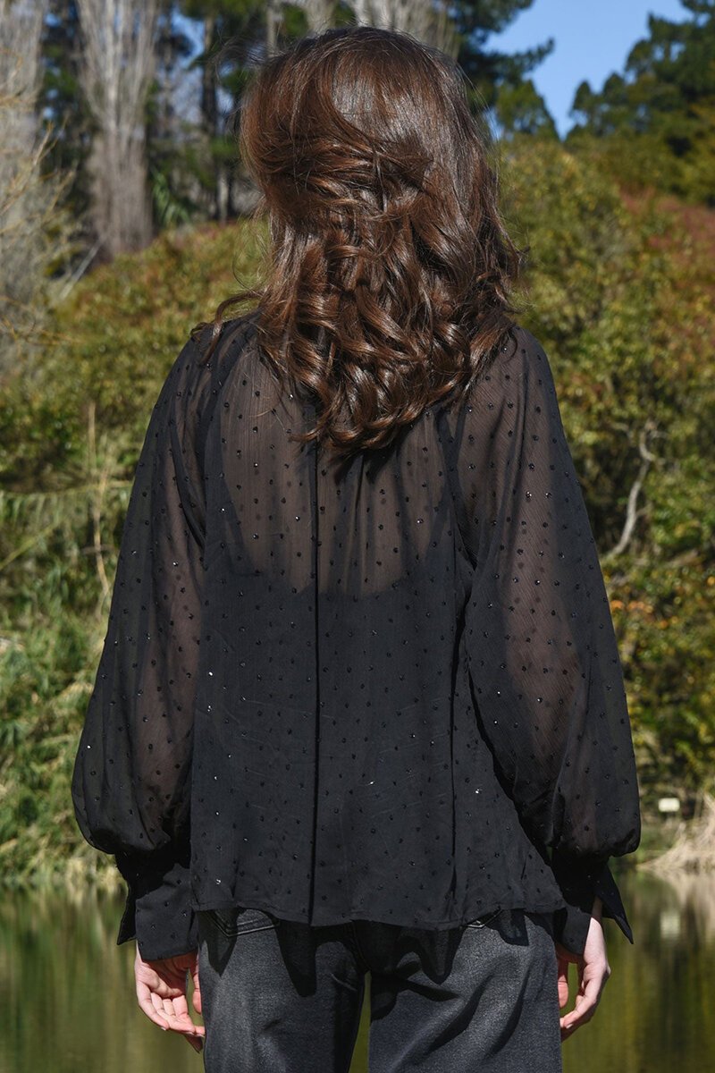 The Coop Sew Fancy Blouse is a statement blouse designed to turn heads, with sheer texture and elegant detailing throughout. Perfect for dressing up denim or elevating tailored pants for an evening-ready look.
