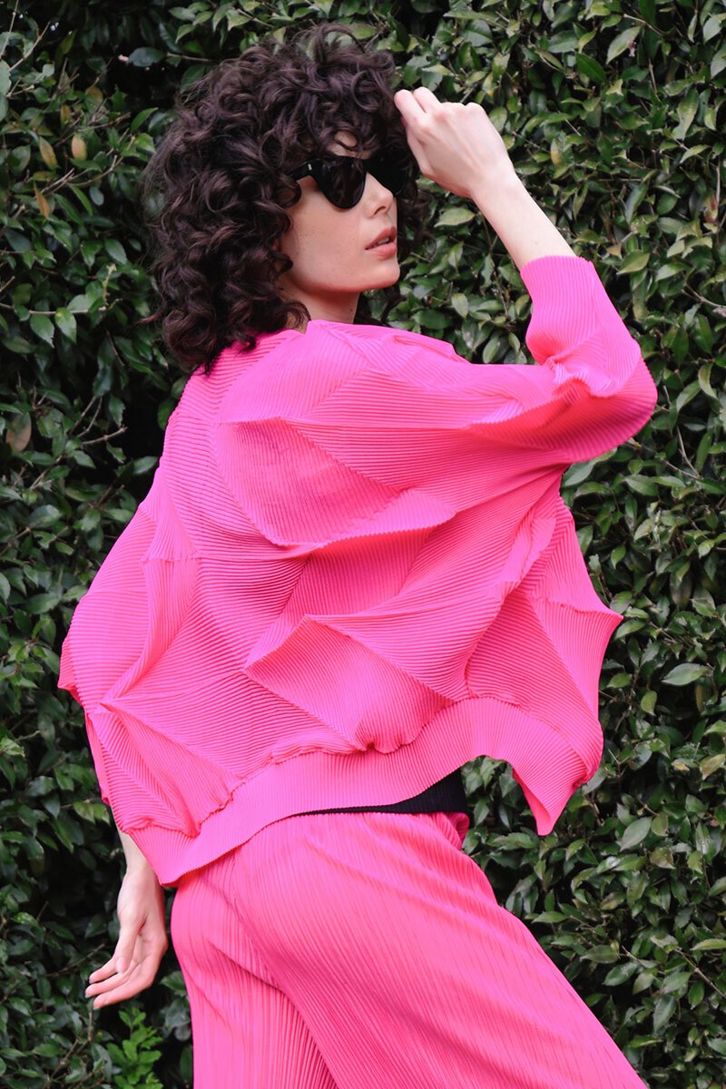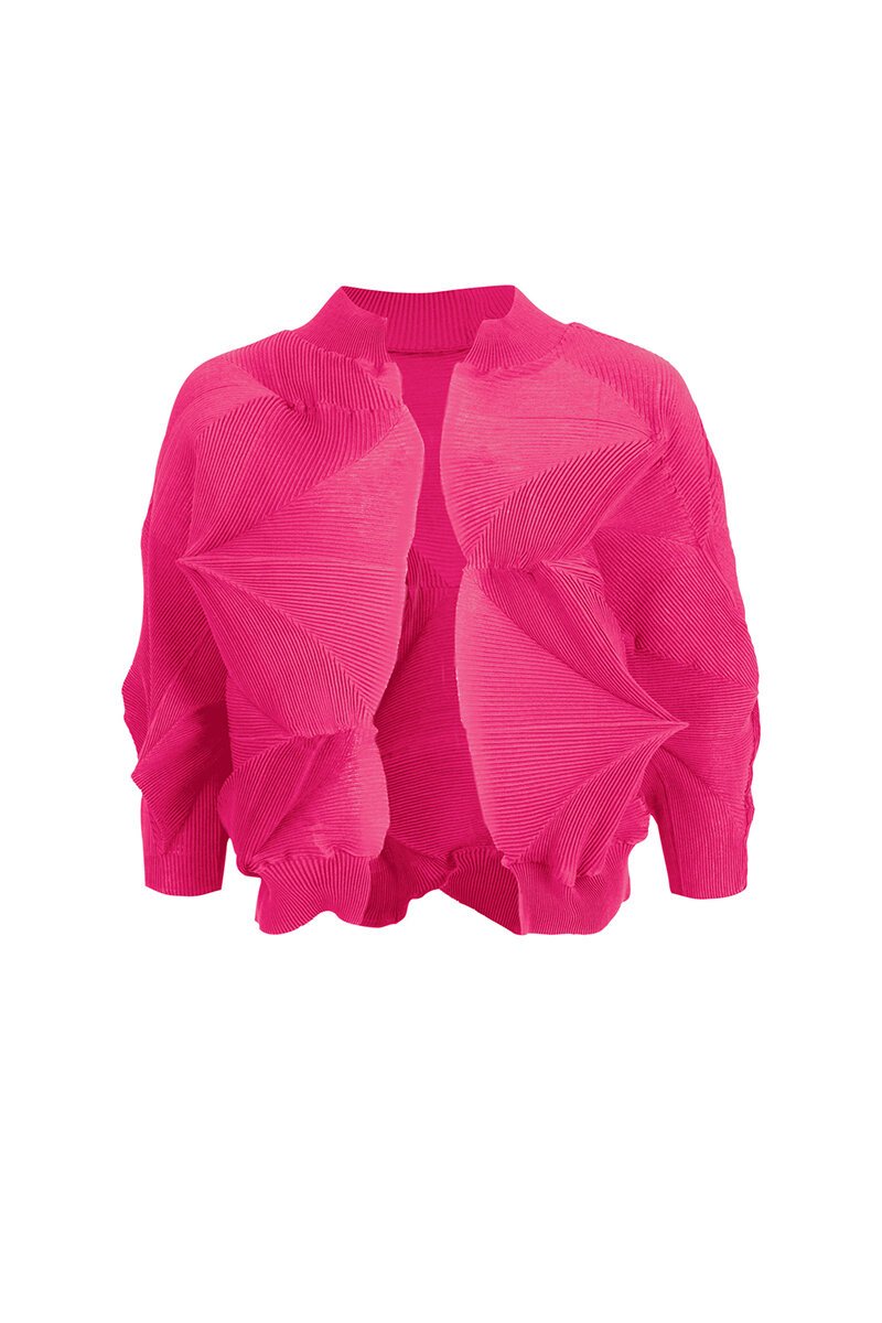 The Curate Arts And Crafts Jacket is your bold, sculptural statement layer. With its pleated 3D texture and playful volume, it instantly lifts any outfit. Throw it over simple tanks or dresses when you want drama without the effort.