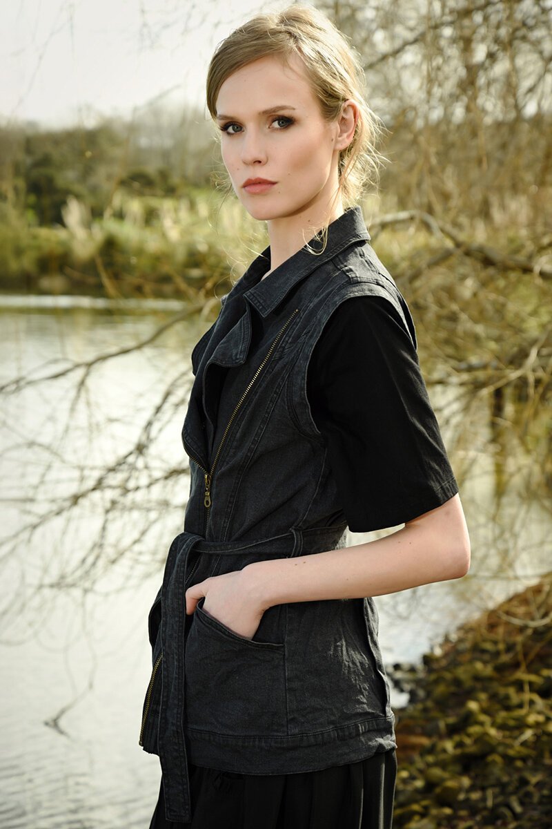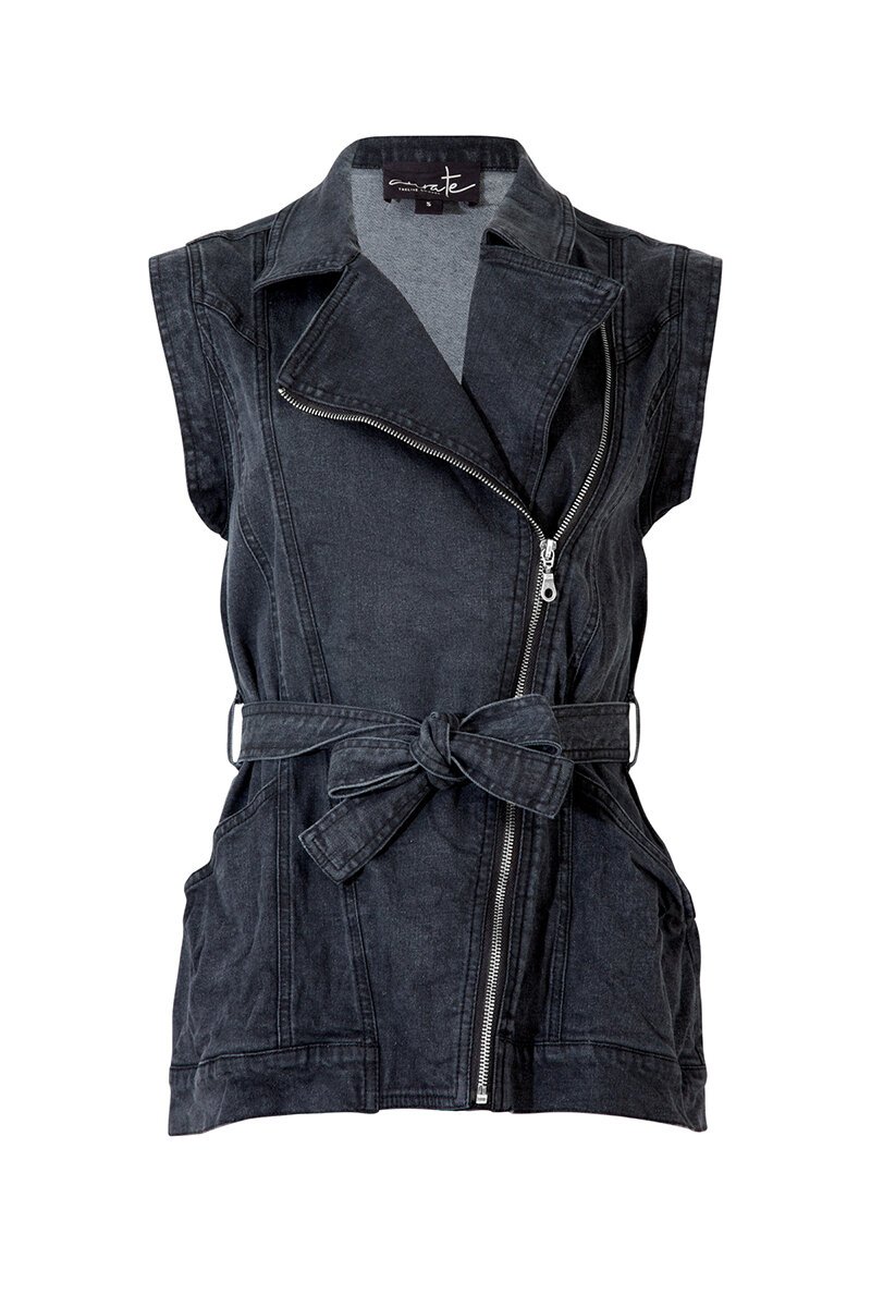 The Curate You’re My Vest Friend Vest is denim, but with a twist. This zip-front beauty brings a sleek, slim fit with a tie waist for a flattering shape. Functional pockets of course. Made from stretch denim, it’s comfy, cool, and ready to layer over just about anything. Wear the tie to the back if you want to wear it open - it works both ways.