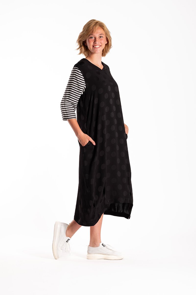The Deeanne Hobbs Bobbi Spot Dress is playful yet effortless, with its bold spot print and easy relaxed fit. Featuring striped sleeves for a fun contrast and handy side pockets, it’s the kind of dress that works for everyday wear with sneakers or slides.