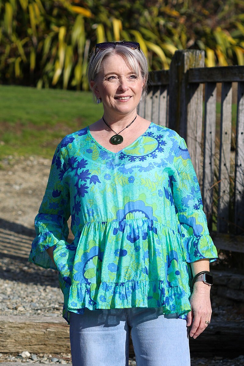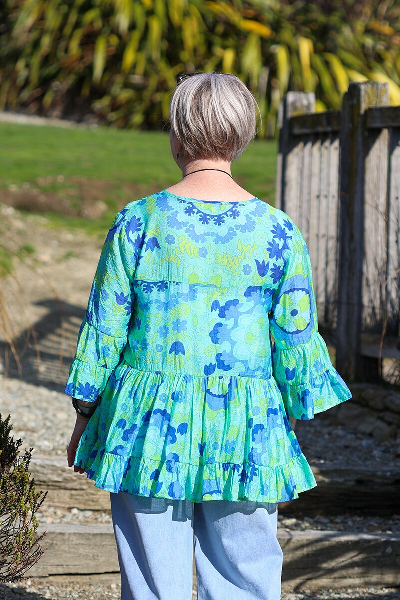 The Democracy Liliana Tiered Top is made for feel-good days. With playful ruffle tiers and a fun floral print, it brings instant personality to your outfit. Pair it with jeans, crops, or shorts for a relaxed yet vibrant everyday look.