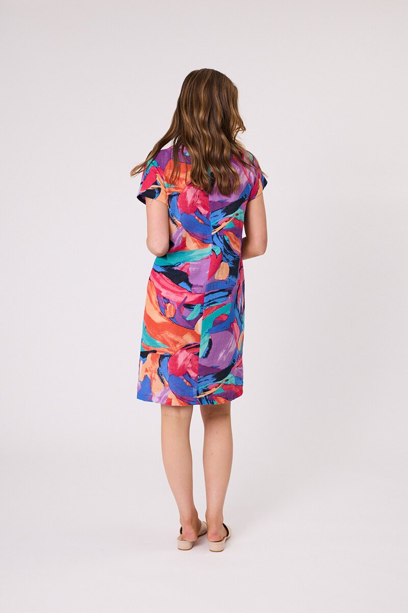 The Democracy Millie Shift Dress is an easy-fit style with a relaxed silhouette that skims the body without clinging. Featuring short sleeves, side pockets, and a lively print, it’s a throw-on-and-go piece perfect for warm days and weekend outings.