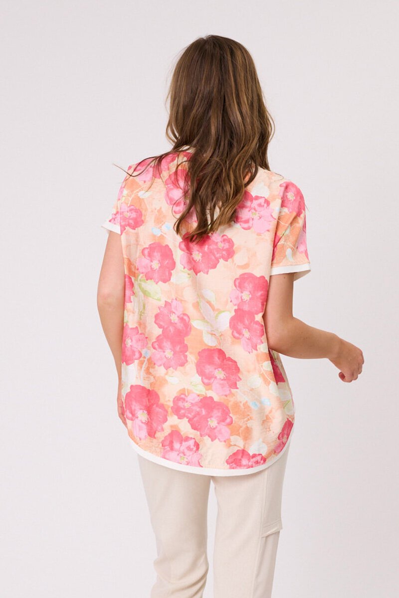 The Democracy Riley Print Top brings a splash of colour and fun to your wardrobe. With its relaxed fit, soft V-neckline, and bold floral print, it’s the perfect piece to pair with denim for an easy yet stylish everyday look.