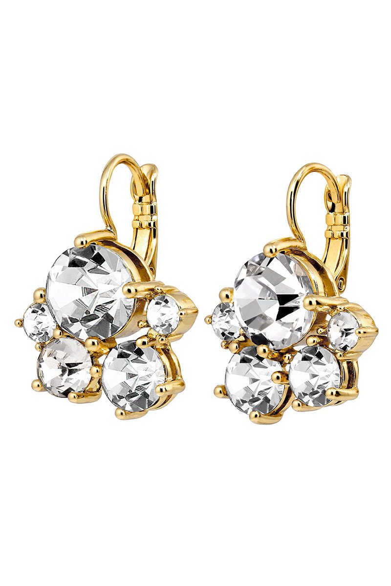 The Disar Gold Earrings are that standout pair that bring all the sparkle. An asymmetric mix of clear crystals catches the light from every angle—bold, polished, and perfect when you want your jewellery to shine.