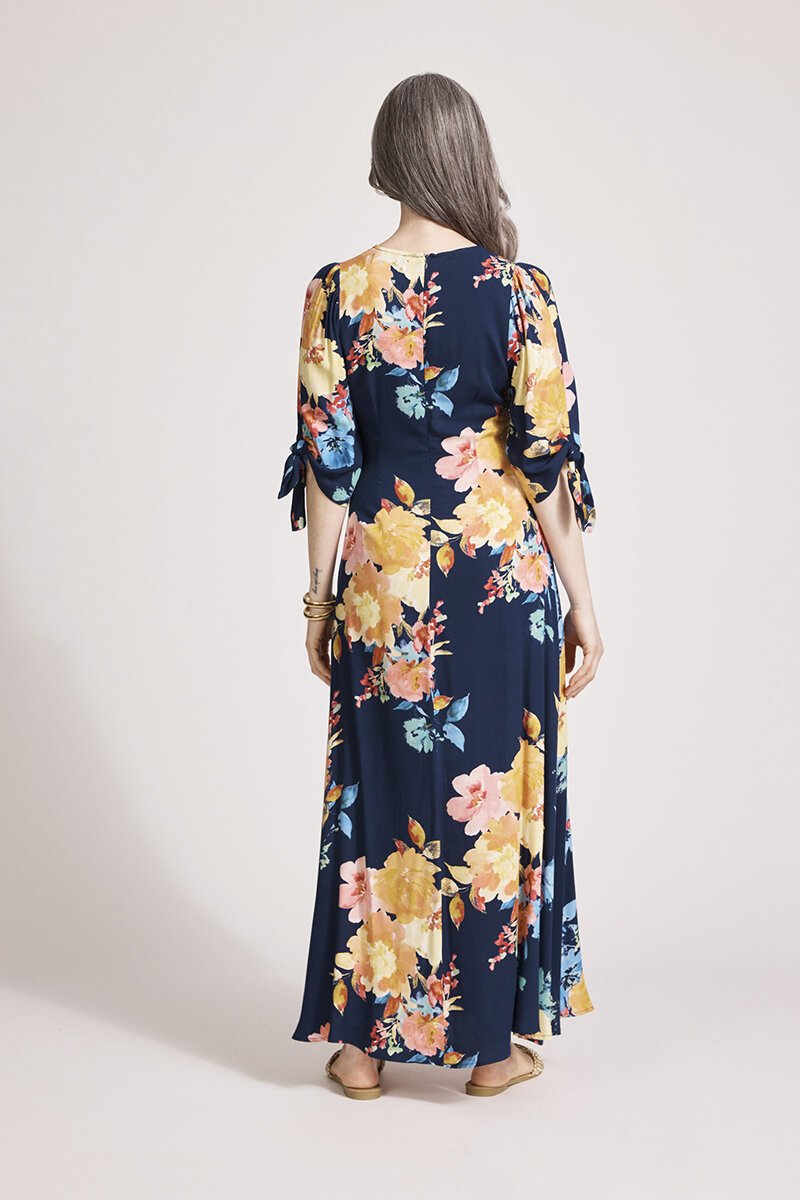 The Eb & Ive Parisio Tie Maxi Dress is a flowy, feminine piece designed to make an entrance. With its vibrant floral print and flattering V-neckline, it skims beautifully over the body—perfect for long lunches, summer evenings, or holiday getaways.