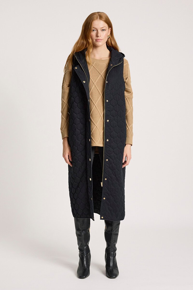 A stylish layering piece for cooler days, the Sansi Quilted Long Vest offers warmth and effortless style. The longline silhouette and quilted texture make it perfect over knits, denim or winter layers.