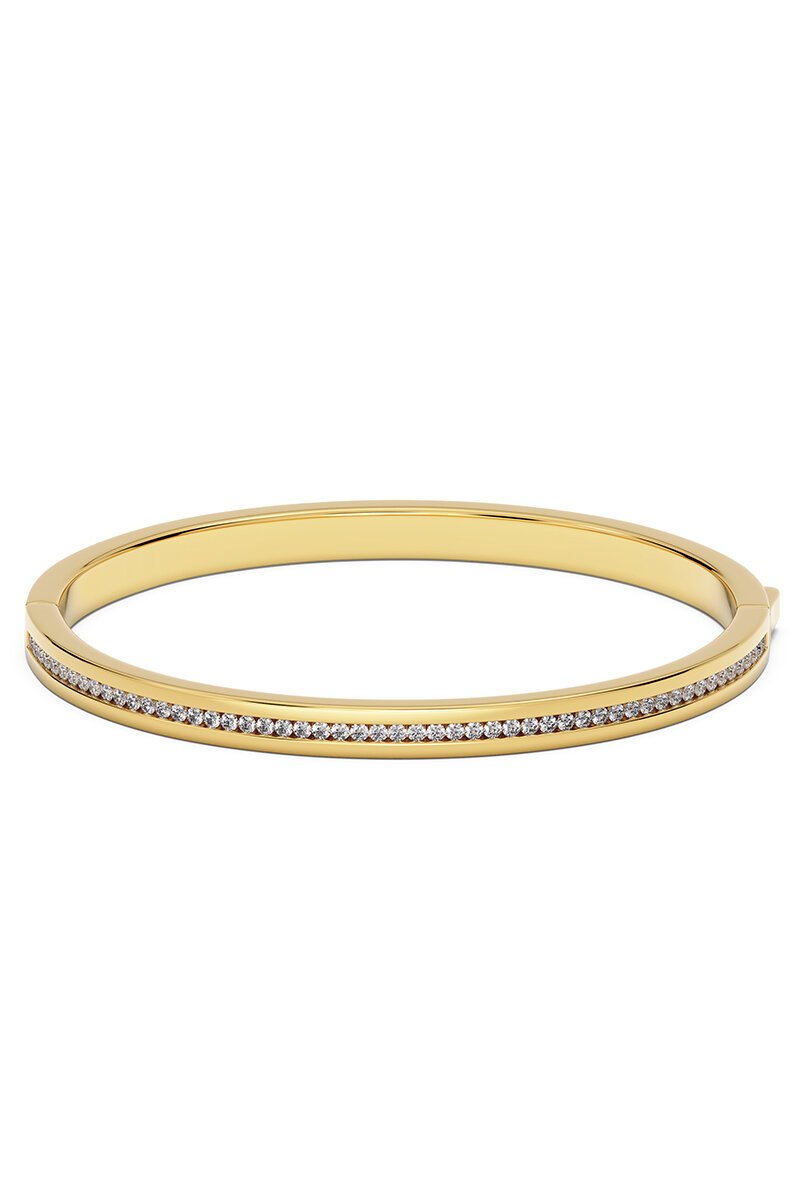 Josefin Bangle Gold is that polished piece with a little extra detail. Stones line the top half for subtle sparkle, while the slim shape keeps it easy to wear on it's own or stacked.