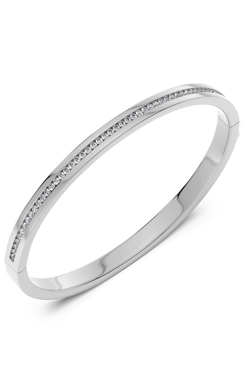 Josefin Bangle Steel is that polished piece with a little extra detail. Stones line the top half for subtle sparkle, while the slim shape keeps it easy to wear on its own or stacked.