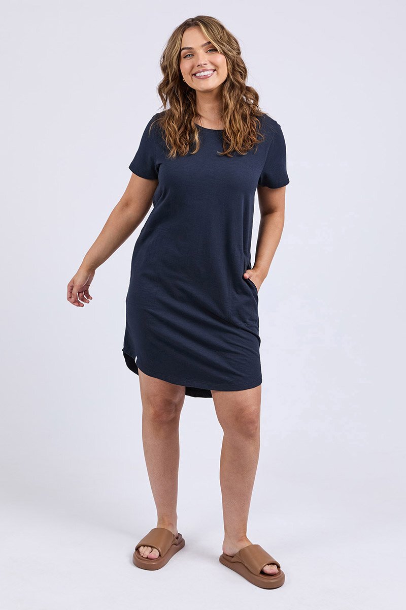 The Elm Aiden Dress is the laid-back staple you’ll live in all season. Made from comfy cotton jersey with a relaxed fit, curved hem, and side pockets, it’s the ultimate throw-on-and-go style. Just add slides or sneakers and you’re good to go.