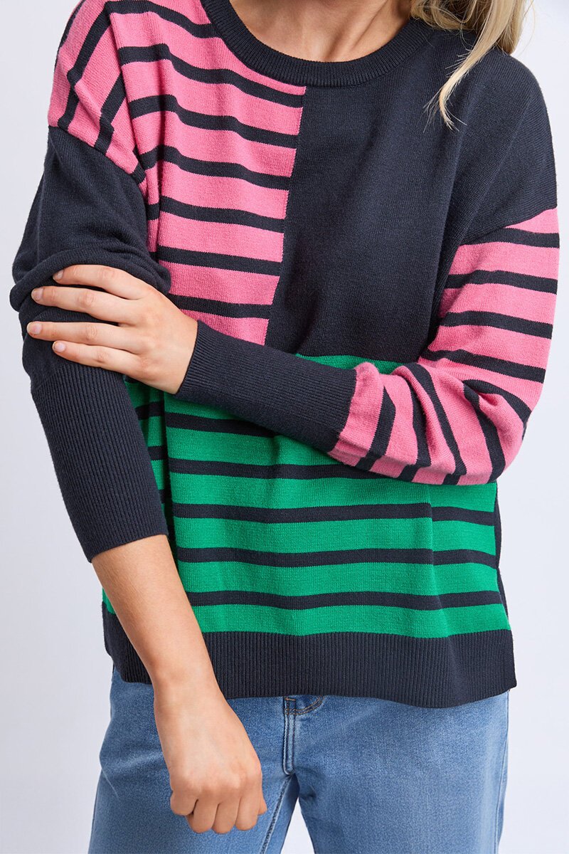 A relaxed crew knit with bold colour-block stripes. Soft, cosy and easy to wear, it adds a playful pop to everyday outfits while pairing effortlessly with denim or pants.