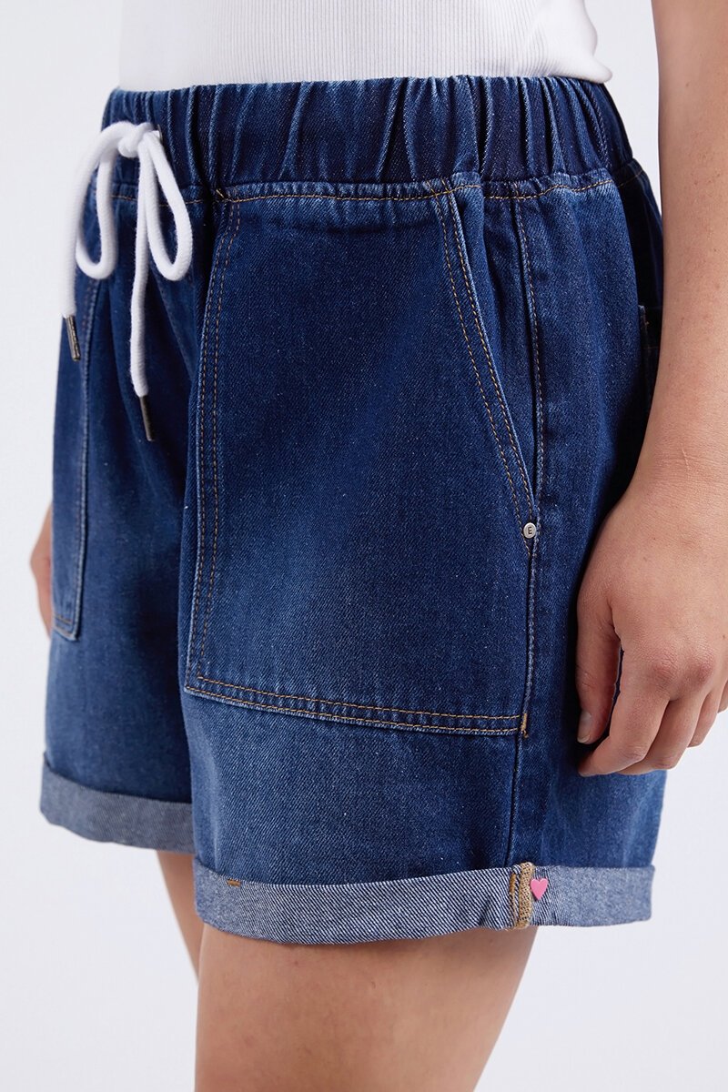 Elm Emma Relaxed Denim Short Dark Blue Wash