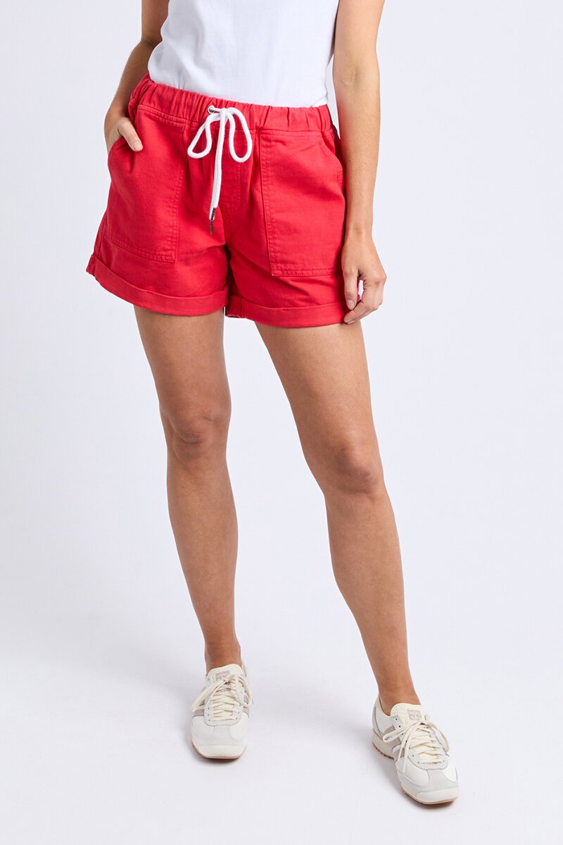 The Elm Emma Relaxed Short brings a burst of bold poppy red to your summer lineup. With a comfy elastic waist, contrast drawcord, roomy patch pockets, and a relaxed cuffed hem, they’re an easy, everyday staple—just add your favourite tee and go.