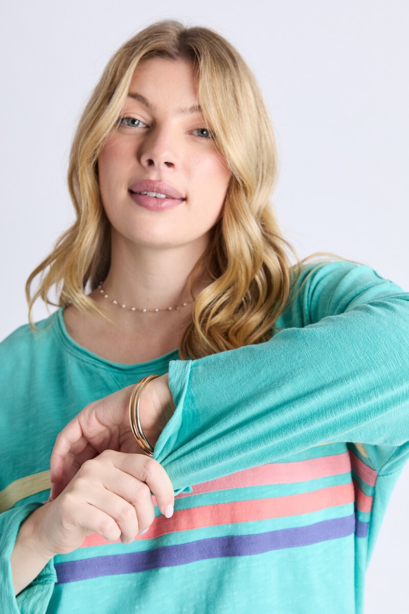 The Elm Exposure Sweat brings an instant pop of colour to your off-duty wardrobe. With its relaxed fit, bold chest stripes, and soft cotton feel, it’s the easy throw-on you’ll reach for every weekend. Just add denim or shorts and go.