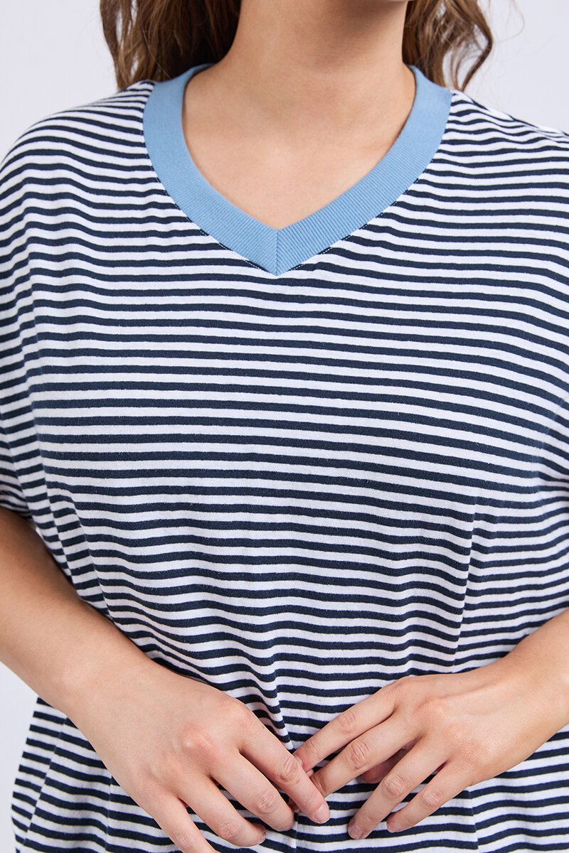 The Elm Liv Vee Tee is your easy everyday go-to. With its relaxed fit, soft cotton feel, and contrast ribbed V neckline, it brings a touch of sporty cool to your casual rotation. Just add denim shorts or relaxed pants for weekend ease.