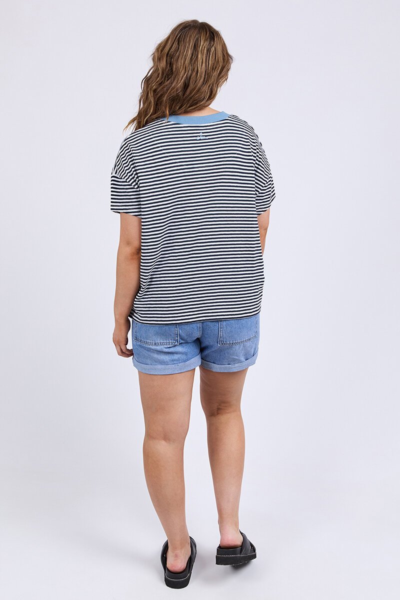 The Elm Liv Vee Tee is your easy everyday go-to. With its relaxed fit, soft cotton feel, and contrast ribbed V neckline, it brings a touch of sporty cool to your casual rotation. Just add denim shorts or relaxed pants for weekend ease.