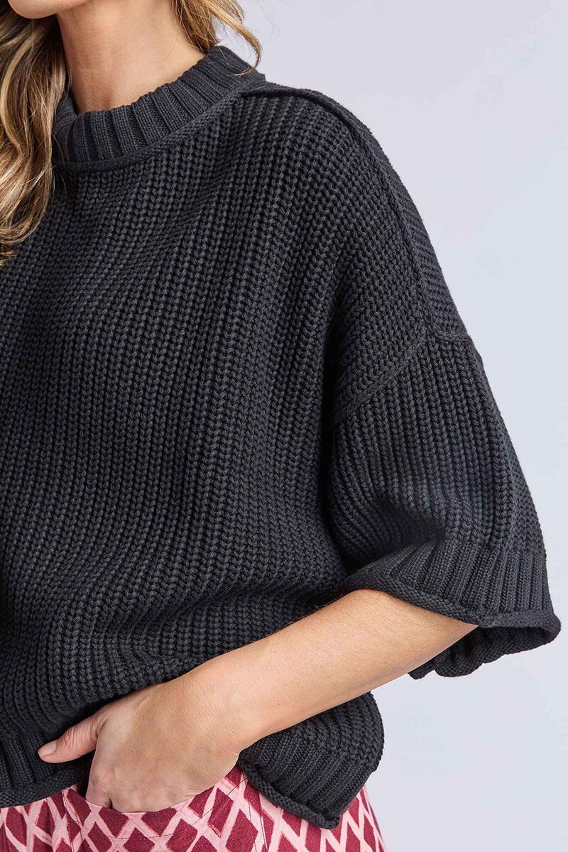 The Elm Luella Short Sleeve Knit is an easy throw-on layer with a relaxed fit and textured knit feel. Finished with ribbed trims and soft volume sleeves for an effortless everyday look.