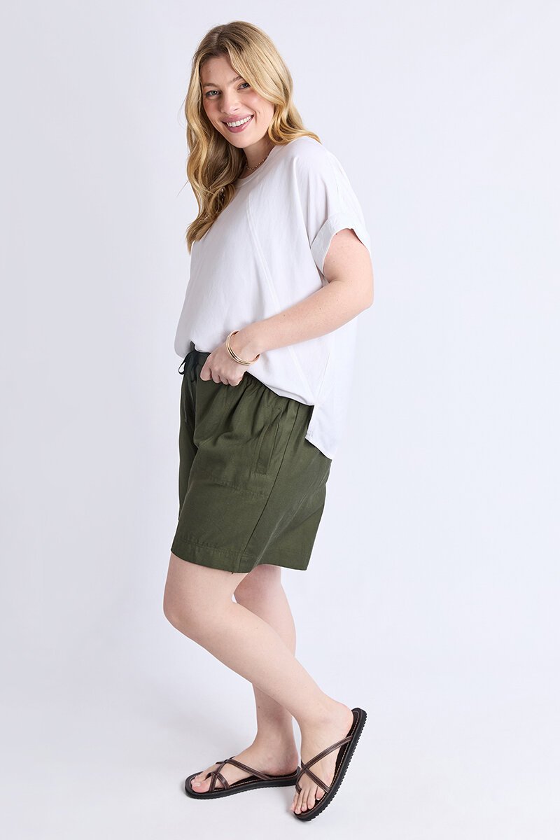The Elm Margi Long Line Short is an easy, pull-on style with a relaxed fit and comfy waistband. Lightweight and breathable, they’re made for everyday wear, holidays, and warm-weather plans.