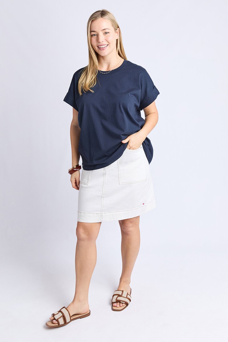 The Elm McKinley Tee is your go-to for casual comfort with a fresh, modern fit. Featuring cuffed sleeves, a relaxed silhouette, and a soft cotton feel, it’s the perfect everyday staple. Perfect with denim or lounge shorts.