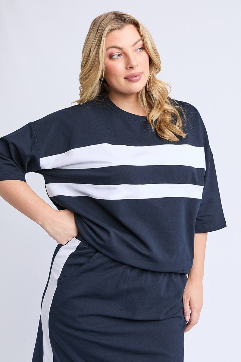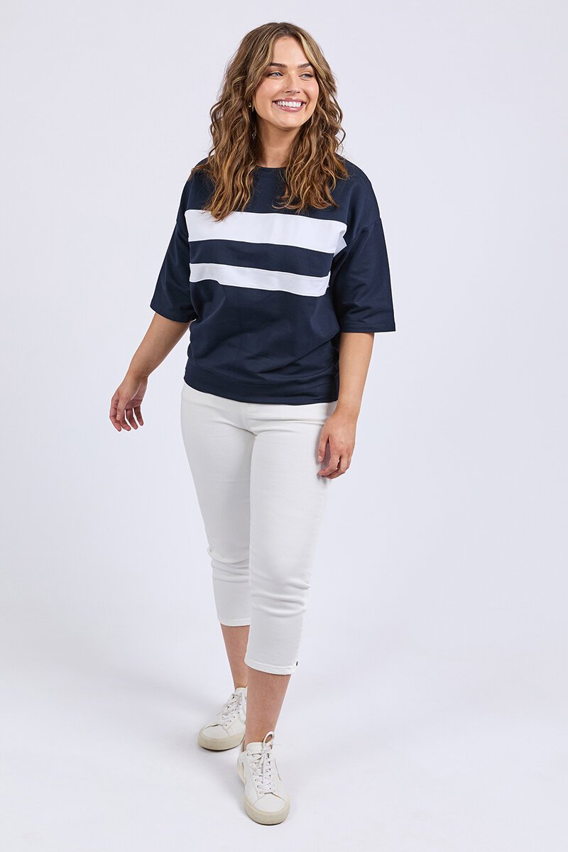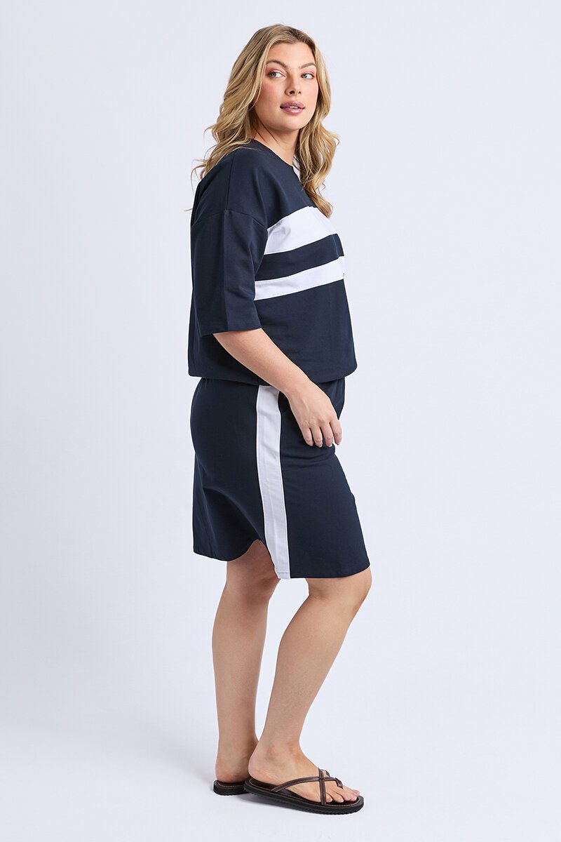 The Elm Nico Sweat has that sporty-cool vibe nailed. With bold contrast stripes and a relaxed fit, it’s the perfect throw-on for casual days. Team it with denim or the matching skirt for an effortless weekend look.