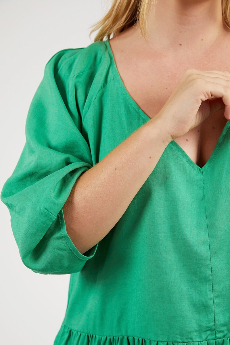 The Elm Rosalie Dress is all about relaxed elegance. With its flattering V-neckline, flowy silhouette, and statement sleeves, it's perfect for laid-back outings or dressy occasions. Pair with slides or trainers for a stylish, easygoing vibe.