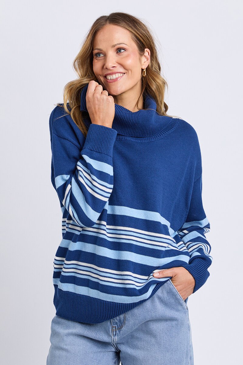 The Elm Striped Roll Neck Sweater is that cosy statement knit that still feels easy to wear. Warm, relaxed and a little bit bold—perfect with denim for everyday or layered under a coat on cooler days.