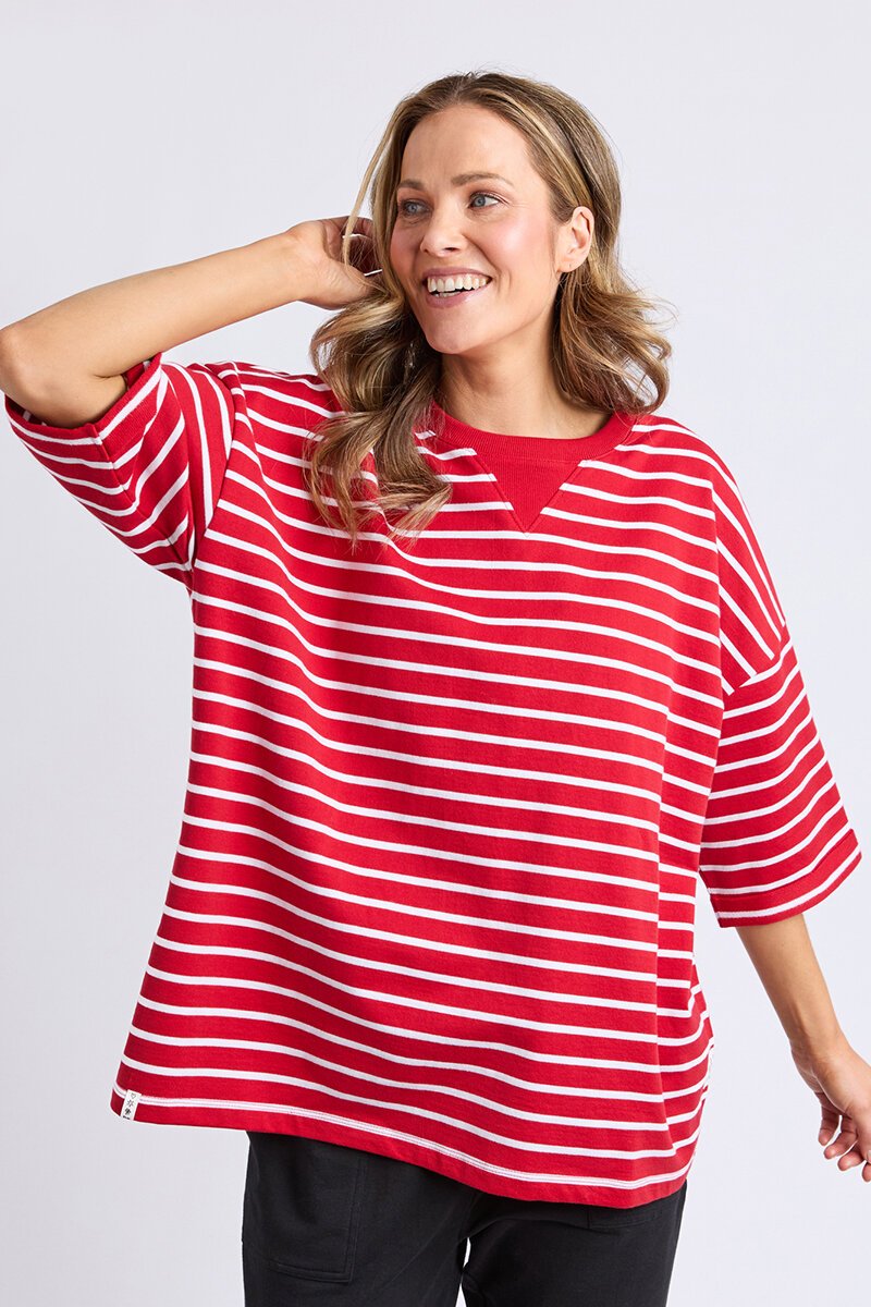 The Elm Valentina Stripe Sweat is your go-to throw-on with a relaxed fit and soft, lived-in feel. Easy, comfy and made for everyday wear—perfect with denim, joggers or layered up on cooler days.