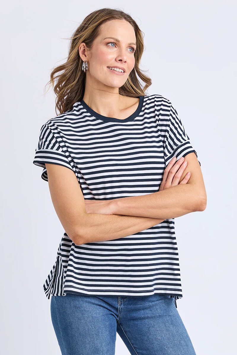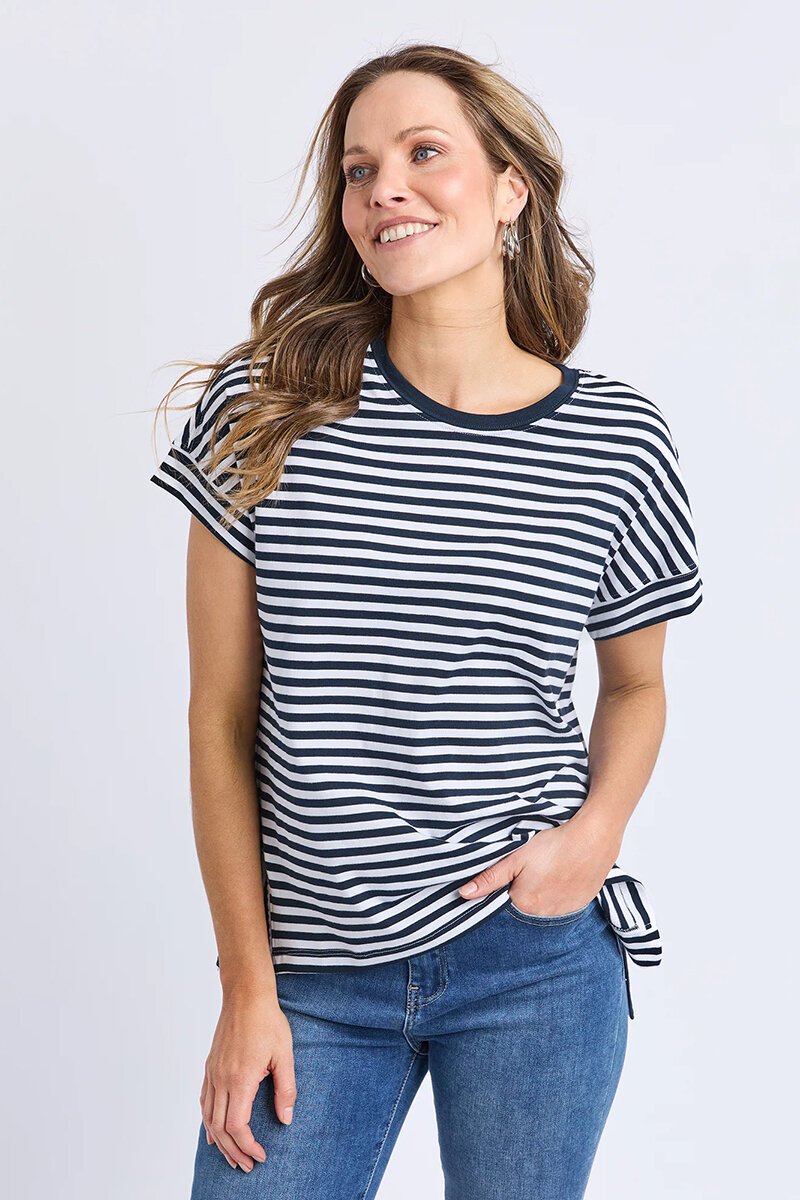 The Elm Yara Stripe Tee is your not-so-basic basic. With its relaxed fit, soft cotton feel, and playful tie detail at the hem, it’s made for easy days and effortless style. Pair with denim or shorts and you’re good to go.