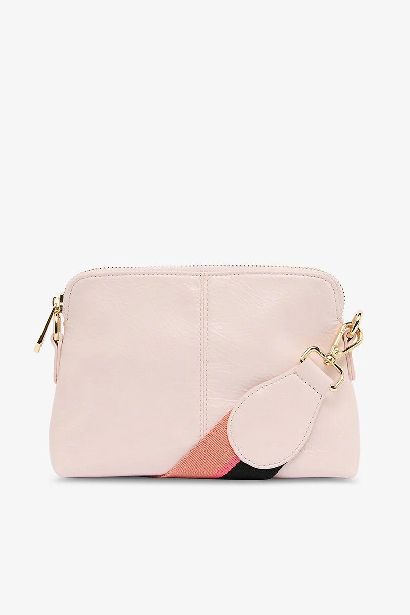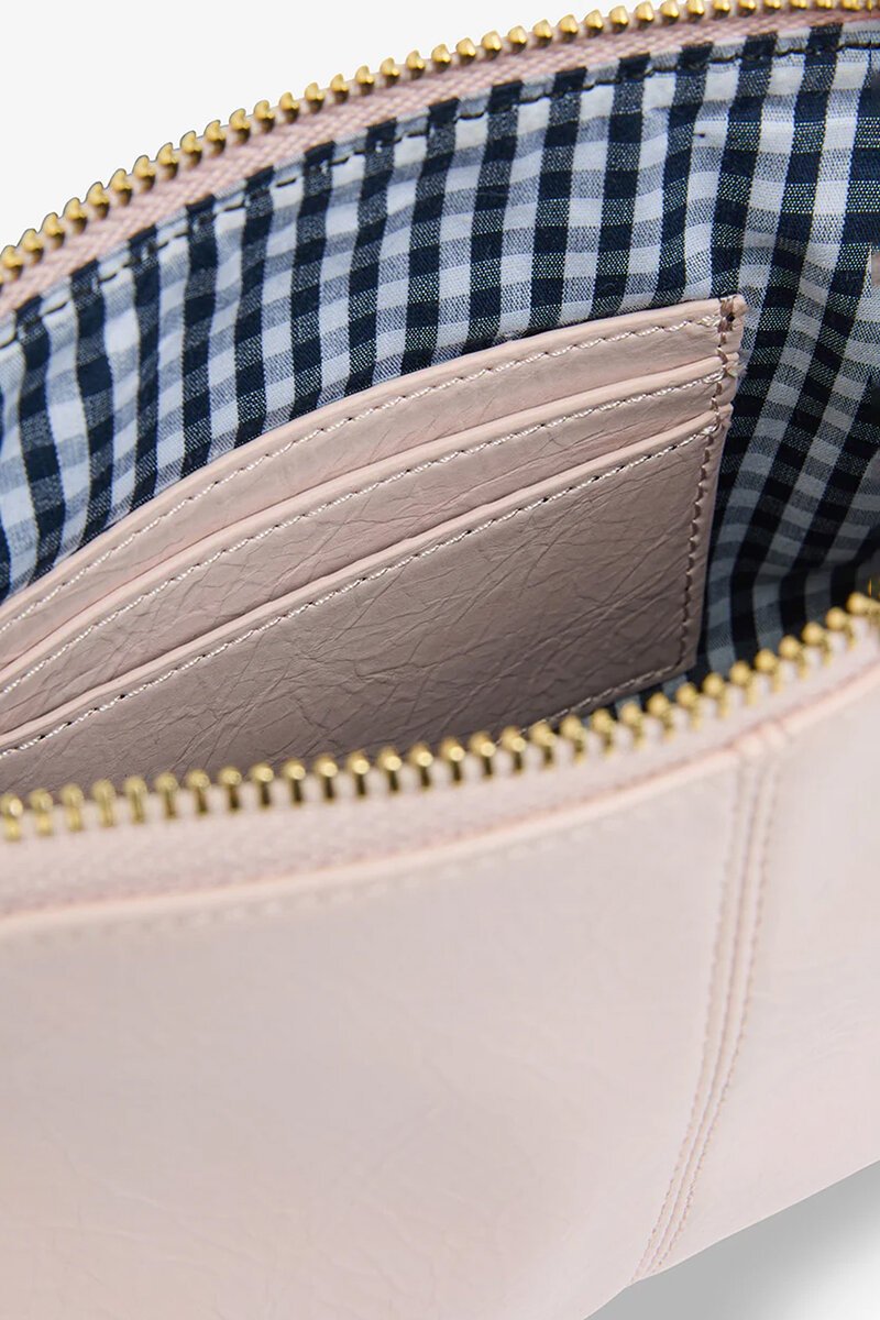 The Elms+King Burbank Crossbody offers compact functionality and the hands-free ease of a cross body. Made from recycled premium polyurethane with 14-karat light gold-plated hardware, the interior of the Burbank Crossbody features 3 credit card slots, our signature blue & white gingham lining and ample depth for all your essentials. The crossbody also comes with two strap options, one wide cotton webbing strap, adjustable to 140cm and a second narrow PU strap, also adjustable to 140cm.
