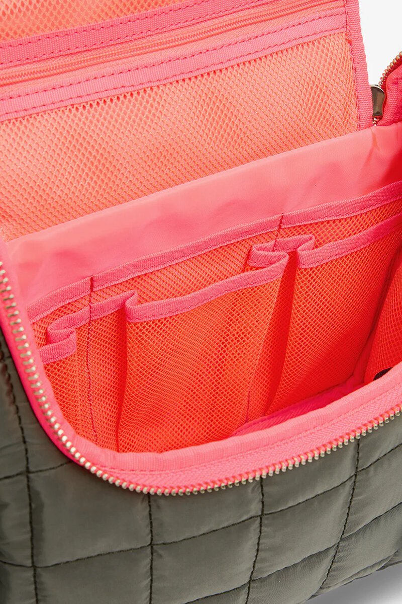 With its clever upright design, the Essentials Bag keeps your daily essentials neat, tidy and easy to access - whether at home or on the go. Ample pockets and a hidden, fold-away hanging hook make organisation effortless, so you can grab what you need in seconds.