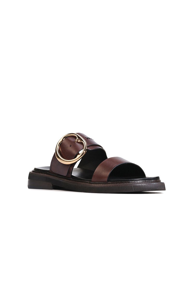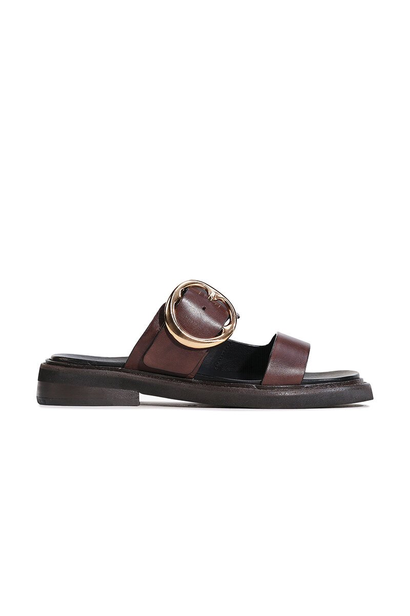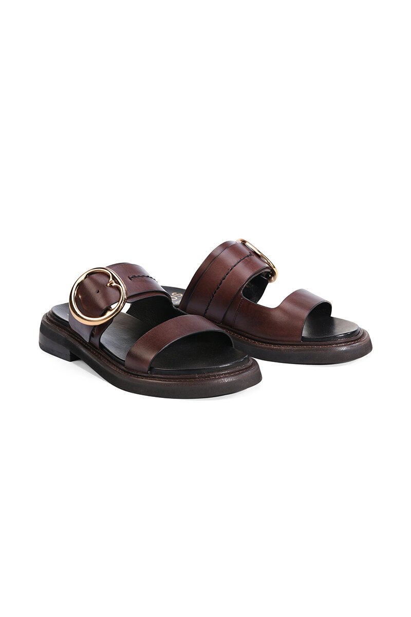 The EOS Stary Slide is your go-to sandal for effortless style and ease. With smooth leather straps, a bold oversized buckle, and a cushioned sole, they deliver both polish and comfort—perfect for slipping on with dresses, skirts, or denim.