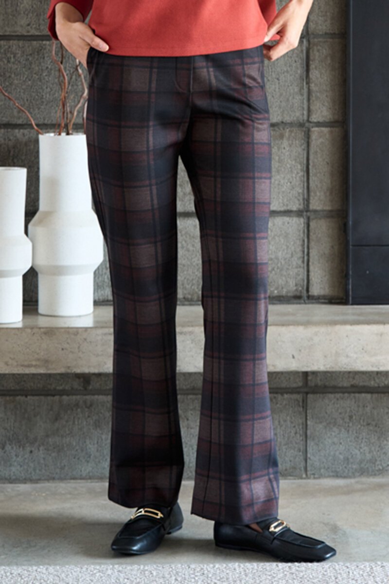 The Esplanade Faux Front Check Trouser is your polished everyday pant. A flattering pull-on fit with a clean front and subtle flare, finished in a classic check that works from desk to dinner.