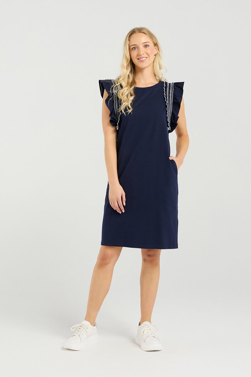 The Et Alia Celeste Dress is the easy throw-on piece you’ll keep reaching for. With playful ruffle sleeves trimmed in stitching detail and a relaxed straight cut, it’s equal parts fun and flattering. Pair with sneakers for day or sandals for a simple summer look.