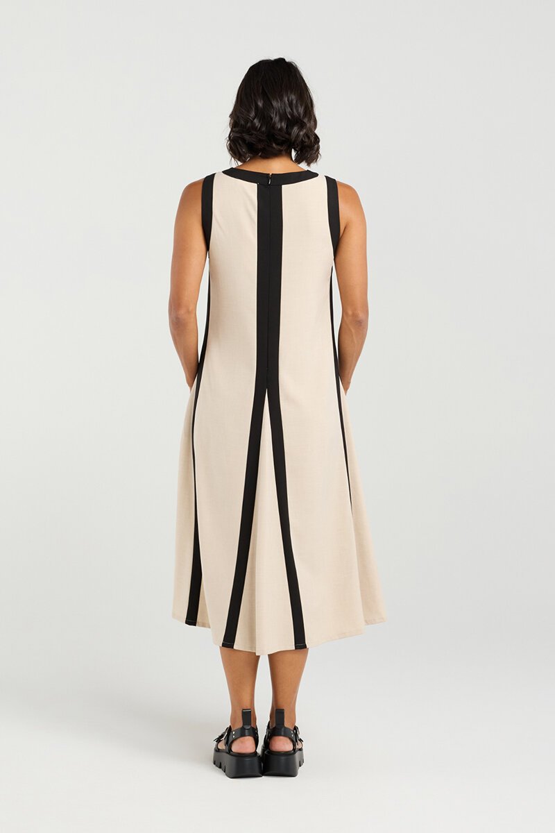 The Et Alia Edie Dress brings sleek, modern lines into everyday dressing. With its easy fit, striking contrast trim, and practical pockets, it’s a style that feels polished yet effortless—perfect for days when you want comfort and impact in one.