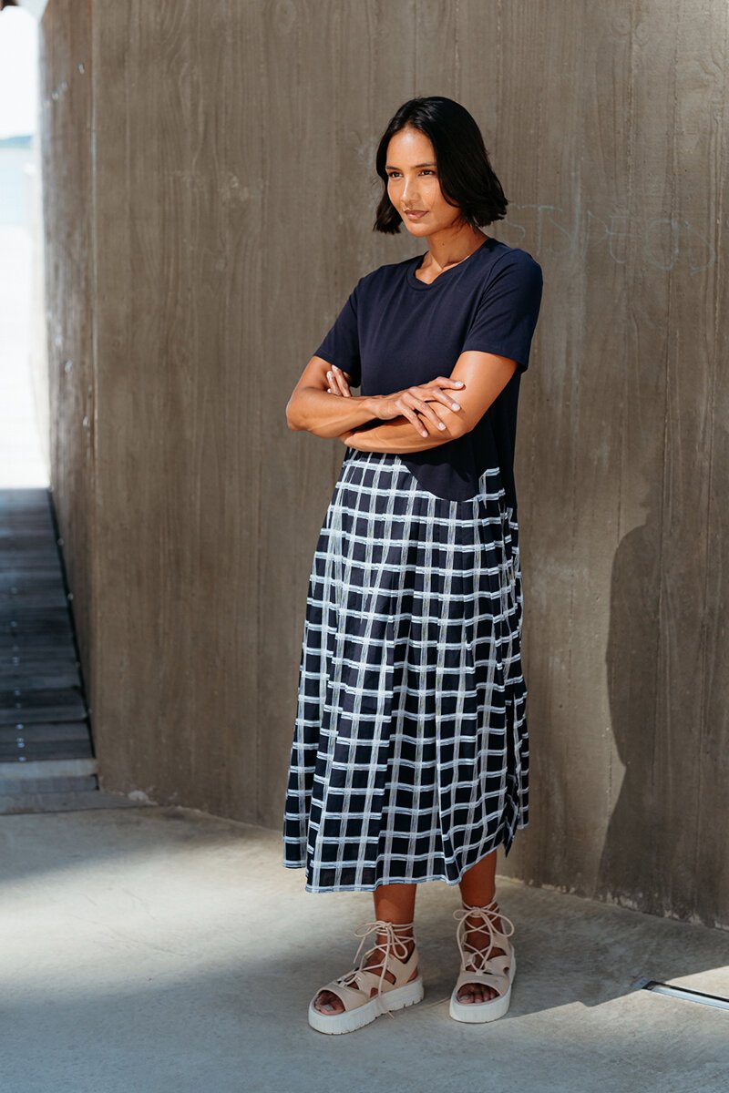 The Et Alia Lee Dress is an easy all-in-one outfit that blends comfort with style. Designed with a soft tee-style top and a flowing midi skirt, it creates a modern layered look without any fuss. The asymmetric seam adds interest, while the relaxed fit skirt makes it perfect for everyday wear or casual weekends.