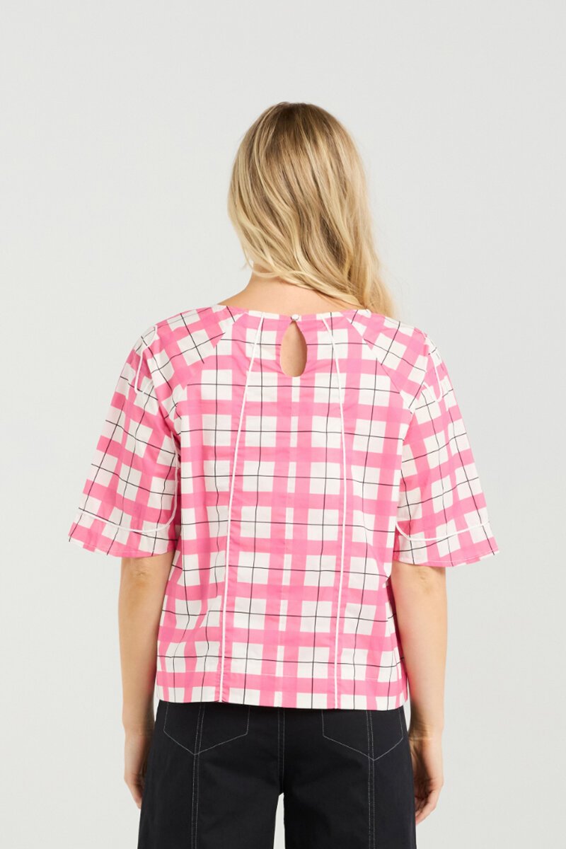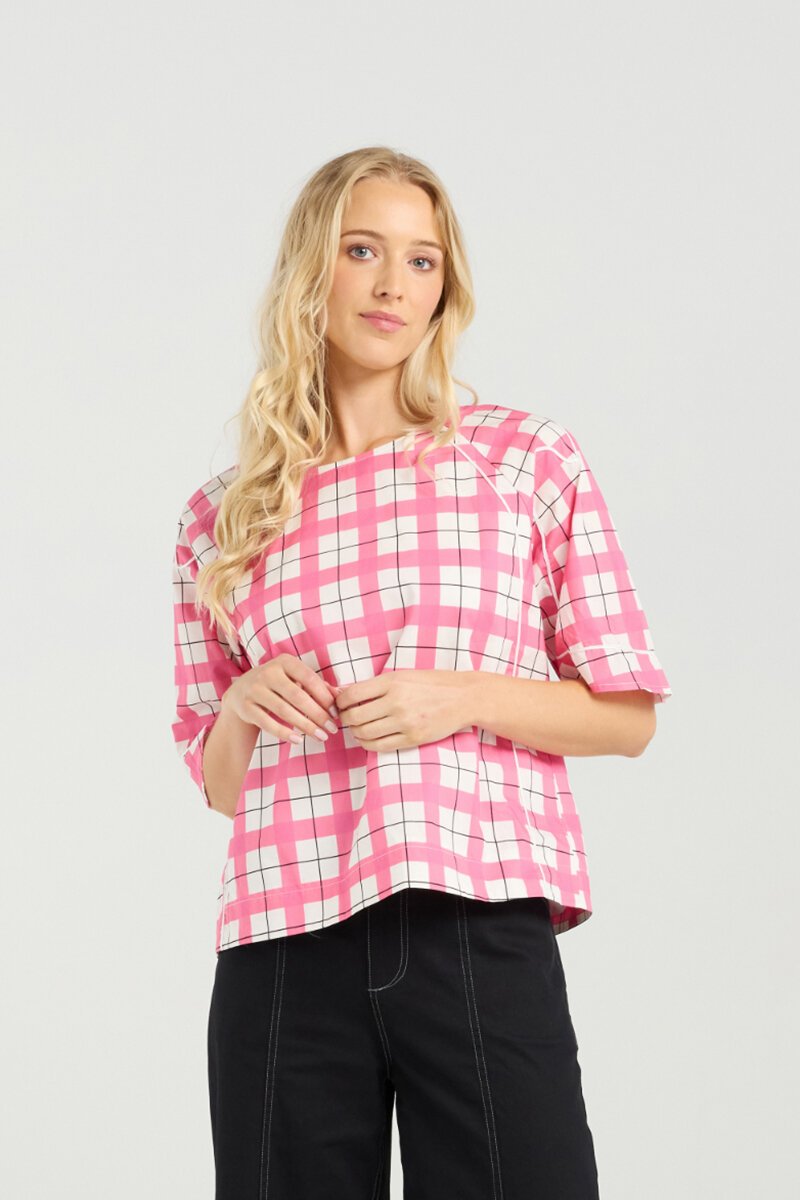 The Et Alia Mila Top is relaxed, modern, and effortlessly cool. Featuring a bold check design and wide short sleeves, it’s the kind of top that works just as well for laid-back weekends as it does styled smart for work.