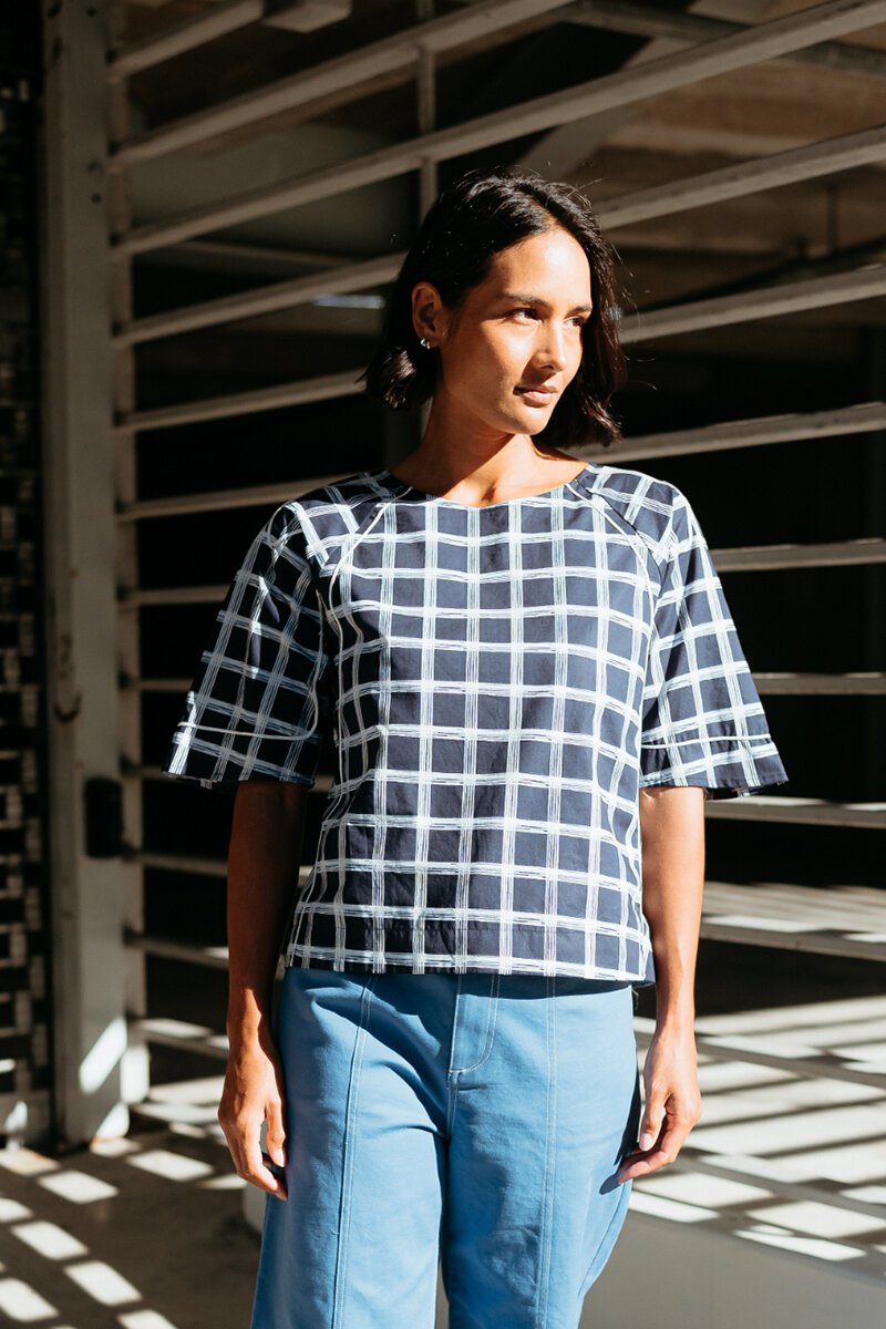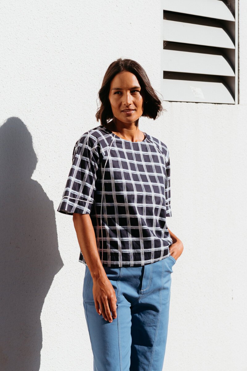 The Et Alia Mila Top is relaxed, modern, and effortlessly cool. Featuring a bold check design and wide short sleeves, it’s the kind of top that works just as well for laid-back weekends as it does styled smart for work.